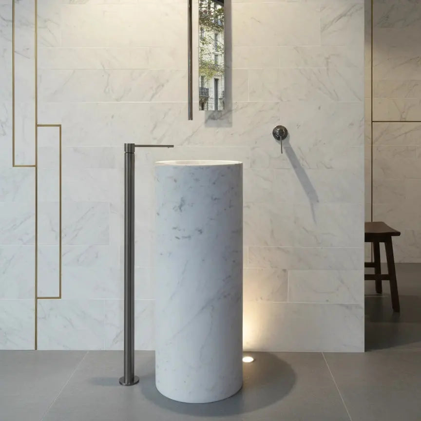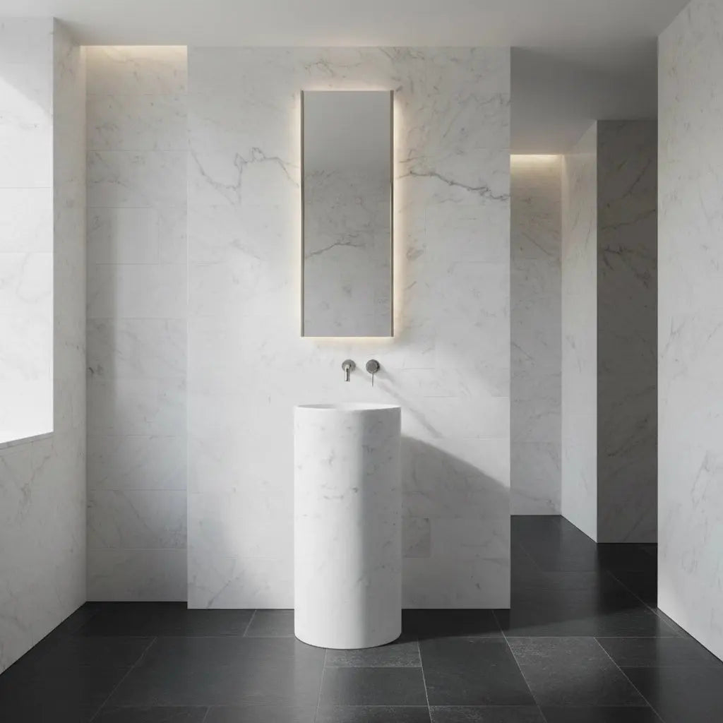 Cette vasque sur pied n’est pas qu’un élément sanitaire : c’est une pièce minérale sculptée, pensée pour durer, traverser les années et mettre en valeur aussi bien un intérieur moderne, hôtelier ou classique.